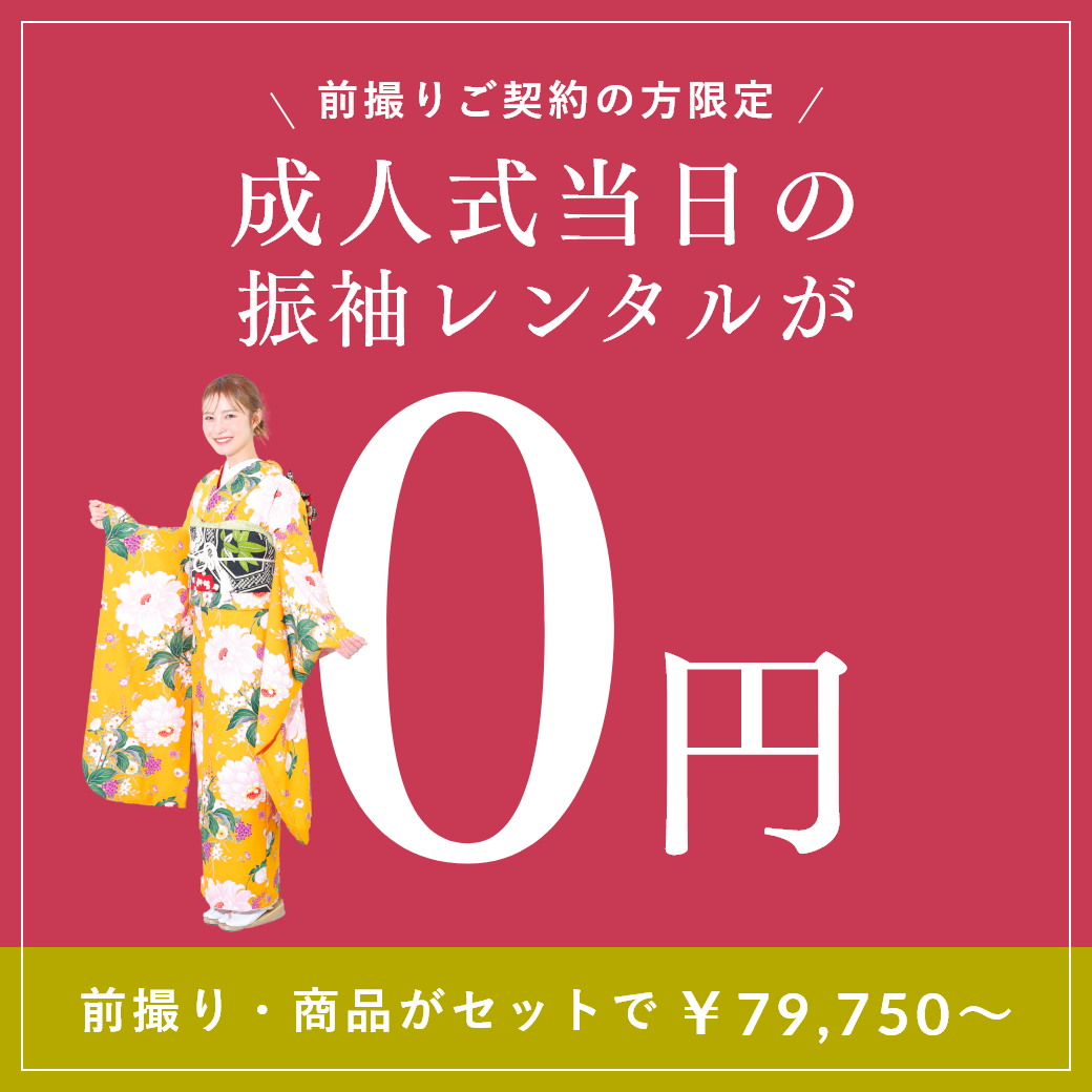 - 前撮り契約で「成人式当日の振袖一式レンタル料」が0円!!